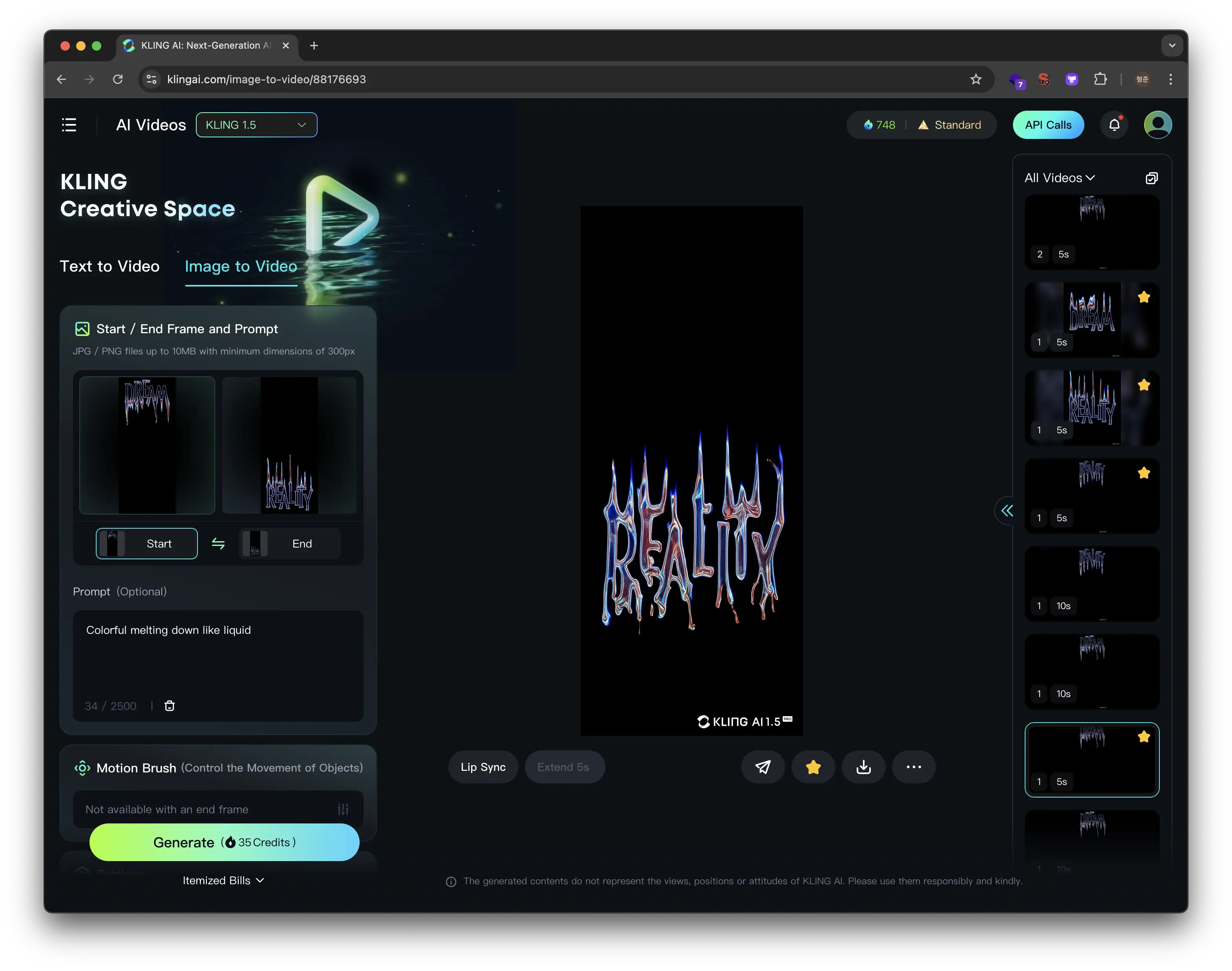 크레딧의 제한도 있고 무엇보다 영상을 생성하는 시간이 5초 기준으로 20-30분은 걸려서 많이 테스트를 해보진 못했다. 하지만 아주 정교한 실사 영상을 만드는 것은 아니기 때문에, 적당하게 괜찮은 영상이 나오면 만족하며 멈추었다.